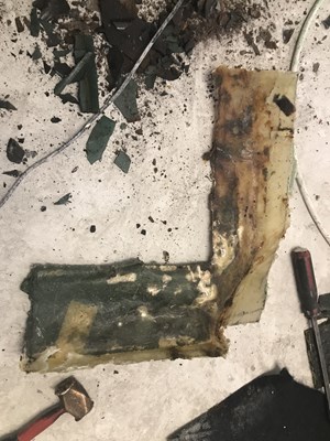 軽くハンマーでたたいてみたら FRPがすんなり剥がれました